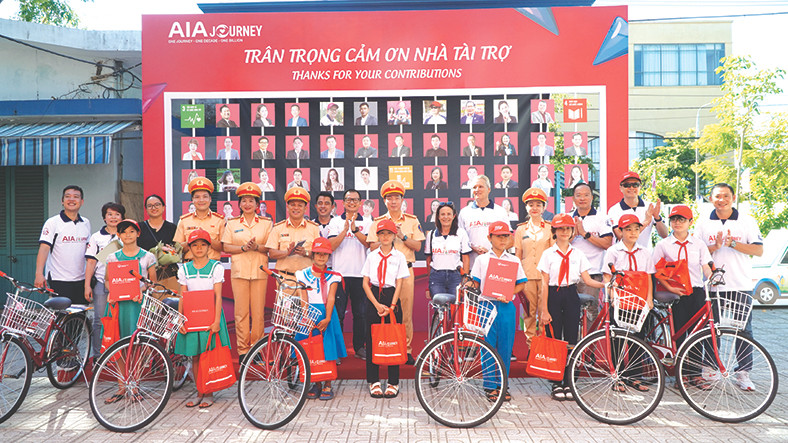 | Ngày 12/6/2024 tại Quảng Nam, AIA Việt Nam đã phối hợp với QBTTEVN, Cục Cảnh sát Giao thông, Ủy ban An toàn Giao thông Quốc gia tổ chức chương trình Hành trình Cuộc sống và trao tặng 230 xe đạp, trang thiết bị học tập, trang thiết bị thể thao và nhiều phần quà, với tổng giá trị 507 triệu đồng cho các trẻ em có hoàn cảnh khó khăn trên địa bàn tỉnh |