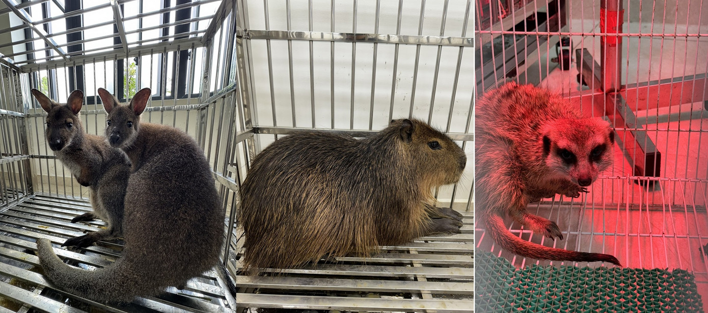 Trước đó, liên tiếp trong khoảng 3 tháng từ cuối năm 2023 đến đầu 2024, công viên bảo tồn này đón gần 30 cá thể chồn đất - cầy Meerkat, chuột túi Kangaroo Wallaby, chuột lang nước khổng lồ Capybara, họ gặm nhấm từ Quảng Ninh cùng hàng loạt loài động vật quý hiếm, nằm trong danh mục cần cấp thiết bảo tồn như tê tê Java, bồ nông trắng lớn, vẹt trắng mắt xanh, rồng Nam Mỹ... Tất cả đều là những cá thể bị săn bắt, nhập lậu trái phép, bị nuôi nhốt trong môi trường sống không phù hợp dẫn đến nhiều vấn đề về sức khỏe và tập tính sinh hoạt.