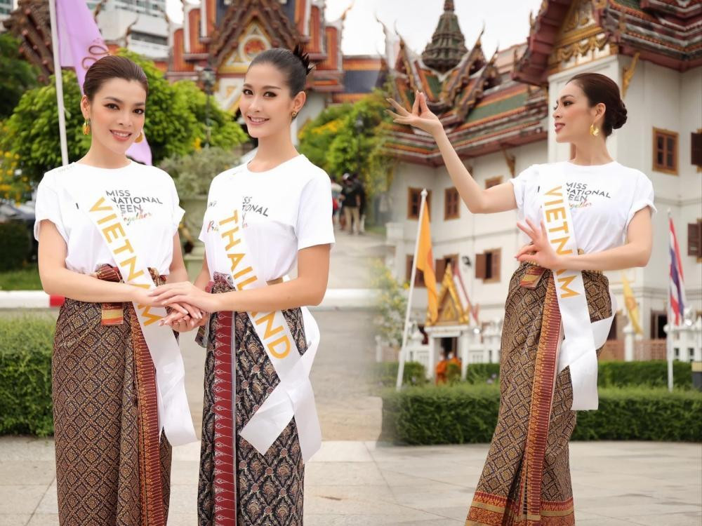 Tấm ảnh khiến fan sắc đẹp phấn khích, Trân Đài đứng chung khung hình với đại diện Thái Lan tại ngôi chùa YanNawa ở Bangkok. Tại đây, Trân Đài cũng cầu nguyện những điều may mắn đến với tất cả mọi người và cũng cầu phúc cho hành trình của mình thật rực rỡ ở đất nước Chùa Vàng.