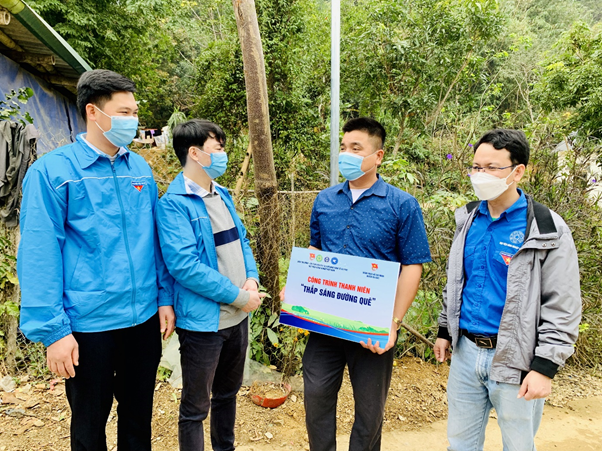 | Đoàn công tác trao tặng địa phương công trình thanh niên “Thắp sáng đường quê” trị giá 25.000.000đ. |