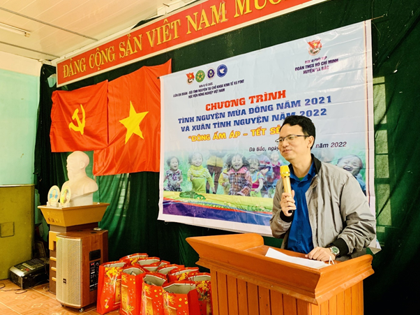 Đại diện đoàn công tác, ThS. Nguyễn Thanh Phong, Phó Bí thư Đoàn Thanh niên Học viện Nông nghiệp Việt Nam, Bí thư Chi bộ Sinh viên Khoa Kinh tế và PTNT đã gửi lời chúc Tết tới lãnh đạo địa phương cùng bà con nhân dân xóm Mơ, xã Hiền Lương. Đồng chí Nguyễn Thanh Phong chia sẻ “Tình nguyện mùa đông là chương trình được chúng tôi tổ chức hàng năm, nhằm động viên, hỗ trợ đồng bào vùng cao, những nơi mà đời sống người dân còn thiếu thốn. Mỗi hoạt động giúp đoàn viên, thanh niên hiểu rõ hơn cuộc sống khó khăn của bà con dân tộc thiểu số, trân quý cuộc sống hiện tại để tiếp tục có nhiều hoạt động chia sẻ với bà con trong thời gian tới”. Thay mặt lãnh đạo địa phương, đồng chí Đinh Hồng Quang, Ủy viên Ban Thường vụ Huyện đoàn Đà Bắc đã gửi lời cảm ơn tới đoàn công tác và hi vọng sẽ tiếp tục được đồng hành với đoàn công tác trong nhiều chương trình, hoạt động tình nguyện ý nghĩa hơn nữa.