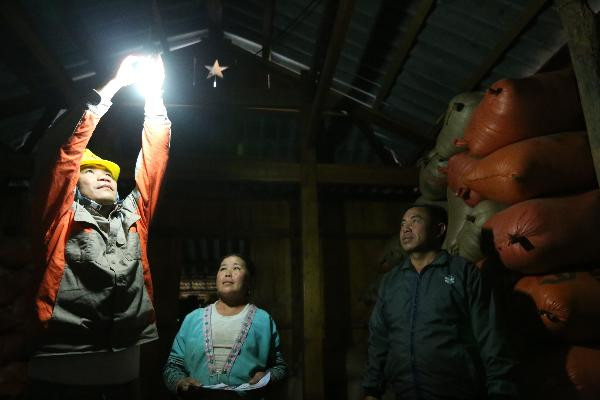 Khi hoàn thành đóng điện tại Trạm biến áp Hua Sin 1&2 cũng là lúc mặt trời lặn, đoàn công tác tiếp tục di chuyển xuống nhà các hộ dân trong bản. Đây là dự án đưa điện về vùng cao, những nơi còn khó khăn nên người dân được Nhà nước hỗ trợ kéo dây về đến nhà, lắp bảng điện và một bóng điện. Nên nghe tin buổi tối sẽ có điện, người dân các thôn không ai rủ ai đều cố gắng đi làm nương về sớm để chứng kiến ‘thời khắc” bóng điện trong nhà mình bừng sáng, nhất là đám trẻ con, đứa nào cũng vui, phấn khởi và háo hức vì sắp được xem tivi.
