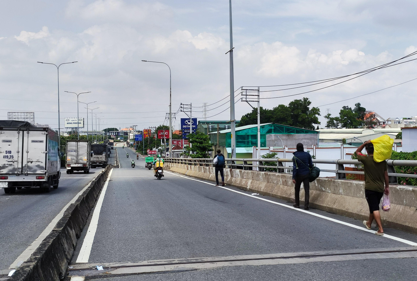 | Các anh trên đường về quê nhà Tây Ninh, đoạn qua cầu Bình Phước. |