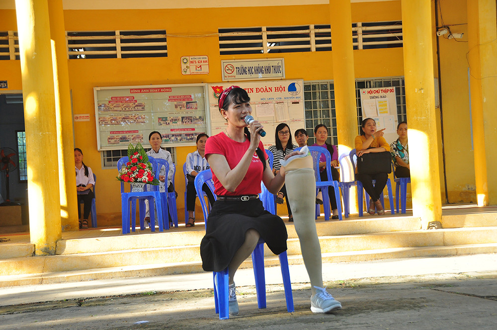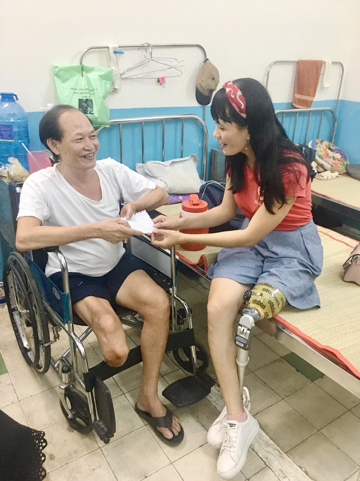 Hay có lần cô Tâm đến giúp hoàn cảnh khó khăn khác, chân đau nên chống nạng đến. Cô ấy cũng tỏ vẻ quý mến, cảm ơn. Nhưng sau khi mình về, cô ấy nói khác đi lại còn dùng từ khó nghe dành cho mình như “con nhỏ một chân đó nó mới lại đây tặng quà cho tôi”.