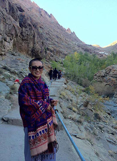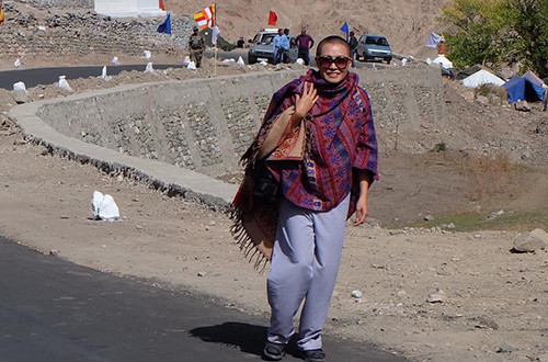 Chị lưu lại bức ảnh kỷ niệm tại vùng biên giới giữa Trung Quốc và Ladakh. Ladakh được biết như là "vùng đất của Gompas (tu viện)". Trong lịch sử, khu vực này là của người gốc Tây Tạng và có rất nhiều tu viện Phật giáo. Do đó, Ladakh còn được gọi là "tiểu Tây Tạng".