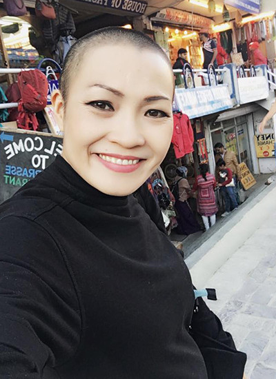 Mỗi ngày, nữ ca sĩ cùng các Phật tử đi bộ trên các sườn núi từ sáng đến khuya để qua các địa điểm làm lễ, nghe thuyết pháp. Chị và mọi người chỉ ăn rau trộn và cơm trắng.