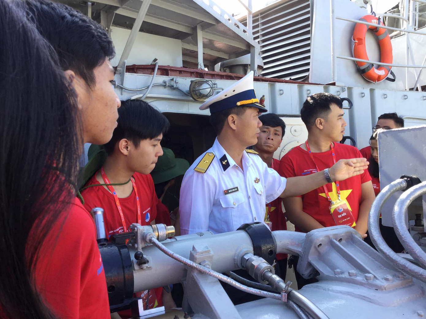 50 bạn đoàn viên thanh niên tiêu biểu được lựa chọn cùng đoàn hành trình thăm tàu hải quân ở Vùng 3 Hải quân và Bảo tàng Hoàng Sa –nơi lưu giữ nhiều tài liệu quan trọng về chủ quyền biển đảo, một gạch nối gắn kết thiêng liêng không gian văn hóa biển với chủ quyền không thể chối cãi của Việt Nam đối với Hoàng Sa.