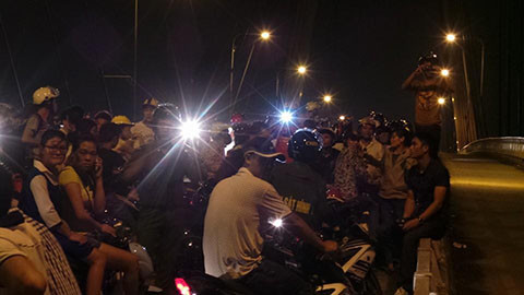 Các lực lượng chức năng đã chốt chặn, hướng cho các học viên đi vào phía bên phải đường trên cầu Bính, tránh ùn tắc giao thông trên cầu.
