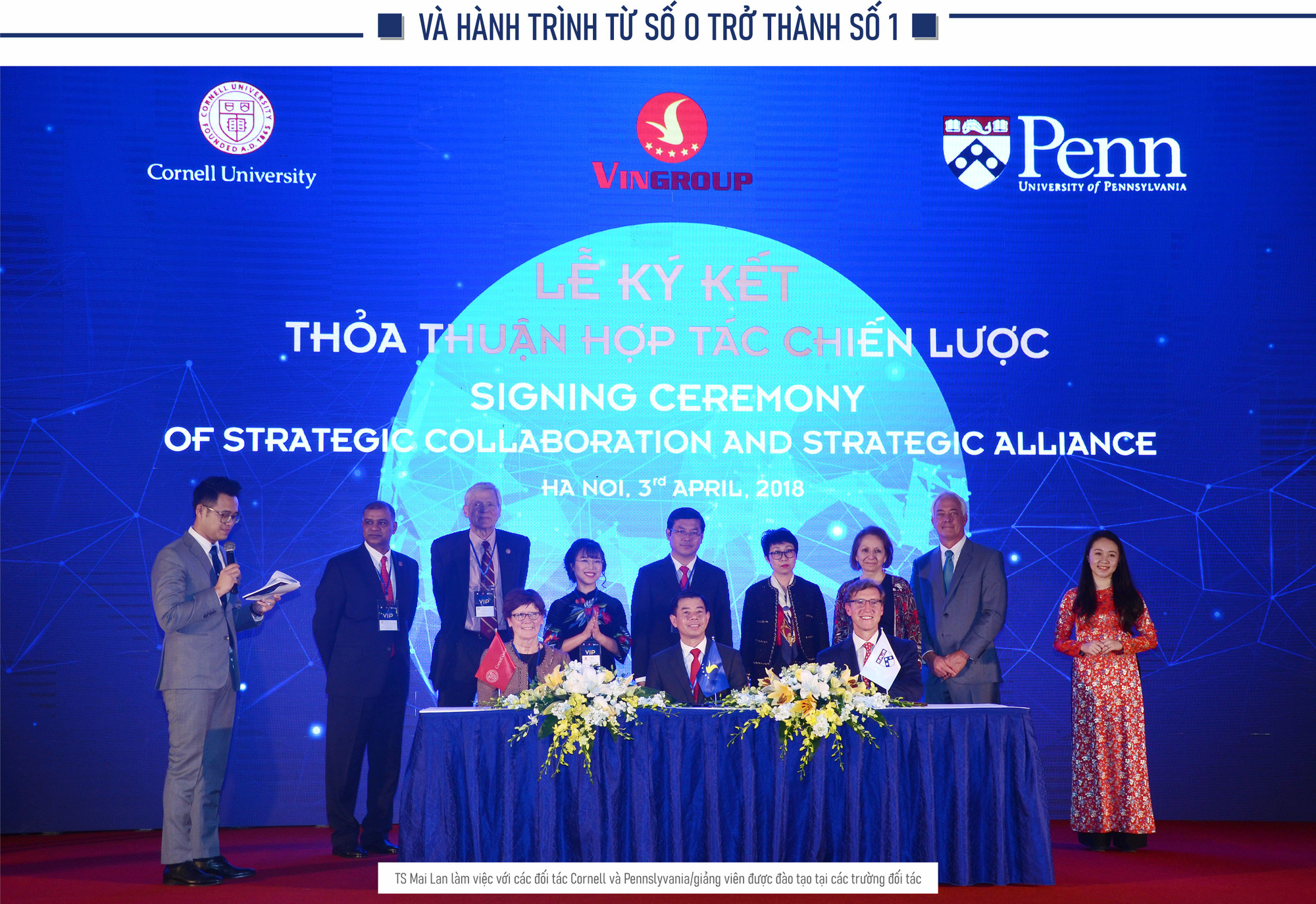 Bằng sự kiên trì và khát vọng mãnh liệt, VinUni đã nhận được cái gật đầu từ Cornell và Pennsylvania - thuộc top 20 thế giới. Từ khi bắt đầu có ý tưởng, VinUni đã mất hai năm để có thể đặt bút ký với Cornell và Pennsylavania (năm 2018) trong vai trò đối tác chiến lược, giúp VinUni xây dựng một trường đại học xuất sắc tại Việt Nam theo chuẩn quốc tế.