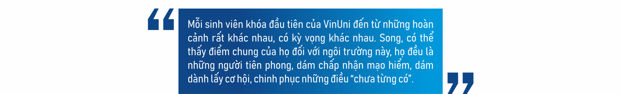 “Lúc đó em nhận được học bổng của 4 đại học bên Mỹ. Nhưng em nói chuyện với bố, cả hai bố con đều nhận định rất lâu nữa Việt Nam mới có một dự án đại học tầm vóc như thế này. Bố em mong em phải là người Việt trước khi bước ra thế giới. Con gái của bố phải biết mặc áo dài, ăn nước mắm, ngắm hoa sen. Và đây là cơ hội để em được trở thành một trong những viên gạch đầu tiên đặt nền móng xây dựng một trường đại học tinh hoa”, Giáp Vũ Nam Dương, cựu sinh viên Viện Kinh doanh Quản trị, nhớ về lý do chọn VinUni, một ngôi trường Việt Nam, 4 năm trước.