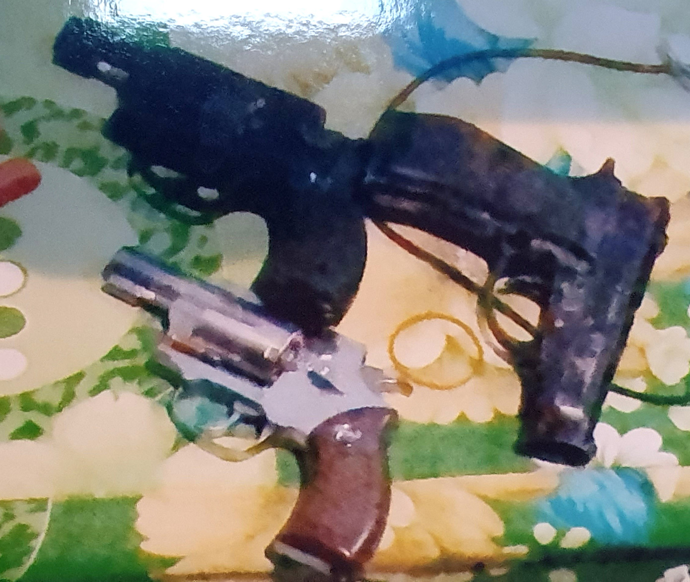 Cơ quan Cảnh sát điều tra - Công an TPHCM đã tiến hành khám xét khẩn cấp, thu giữ tang vật vụ án và tài sản liên quan, gồm: 2 khẩu súng ngắn bằng kim loại; 1 khẩu súng bằng nhựa và kim loại, 6 cây kiếm; 1 cây côn nhị khúc, 21 viên đạn các loại, 3 điện thoại di động hiệu, 13 vỏ đạn, 53 chiếc bông tai các loại bằng kim loại màu vàng, 12.5 triệu đồng...