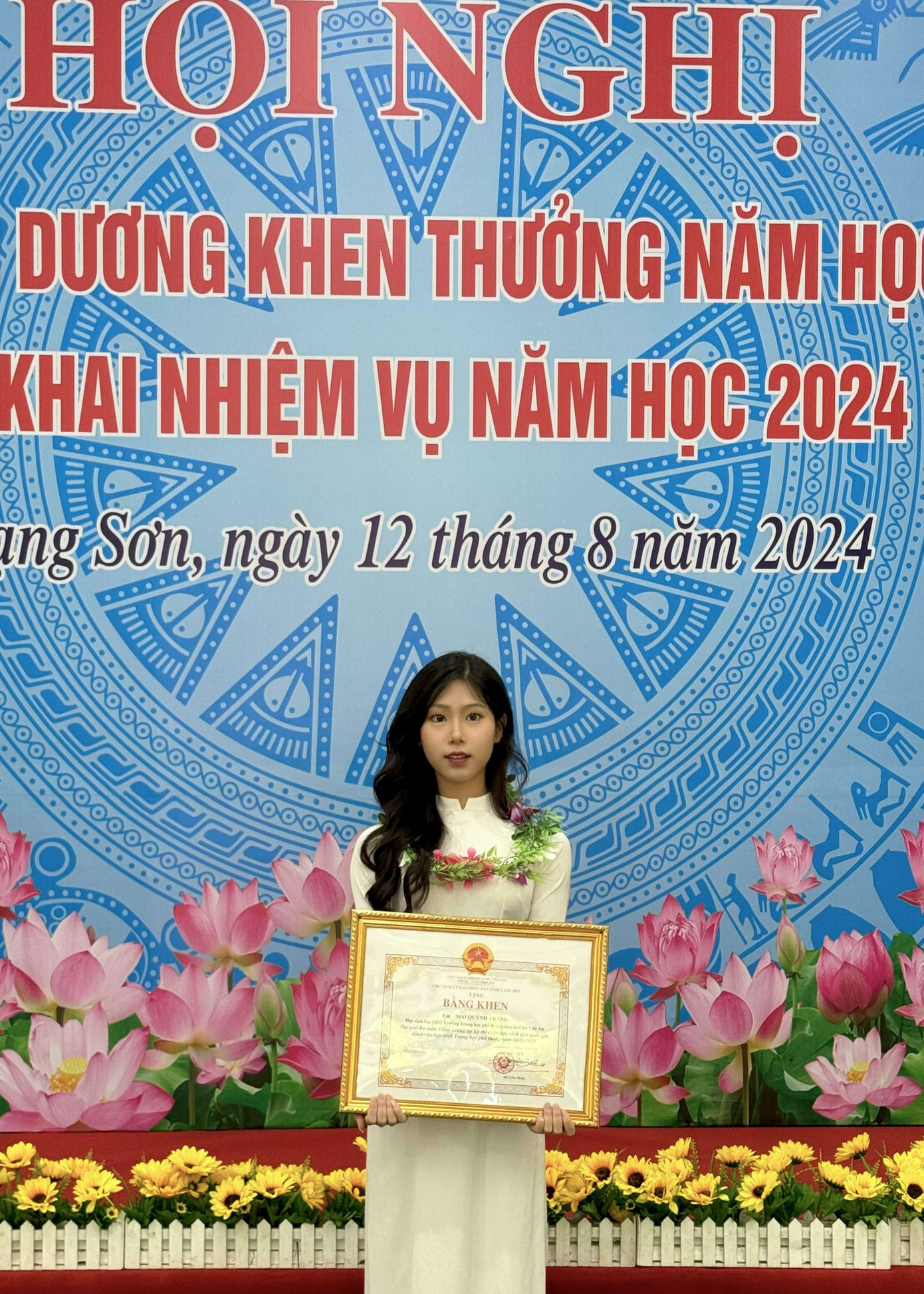 “Vì niềm đam mê với tiếng Trung, mình đã không ngừng tìm tòi, học hỏi. May mắn thay, mình có nhiều cơ hội để khẳng định bản thân. Mình tham gia Đội tuyển Học sinh giỏi tỉnh, Học sinh giỏi Quốc gia và đạt được một số thành tích nhất định. Tất cả đã trở thành bước đệm vững chắc trên hành trình đi tới tri thức, và mở ra cánh cửa tương lai tươi sáng.”, cô nói thêm.