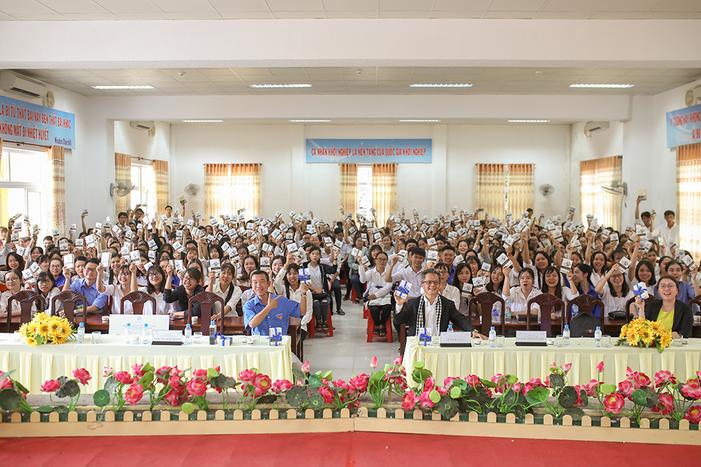 Sáng 16/9, “Hành trình từ trái tim – Hành trình lập chí vĩ đại - Khởi nghiệp kiến quốc cho 30 triệu thanh niên Việt” diễn ra tại trường đại học Trà Vinh để trao tặng hàng nghìn quyển sách quý cho các bạn sinh viên.