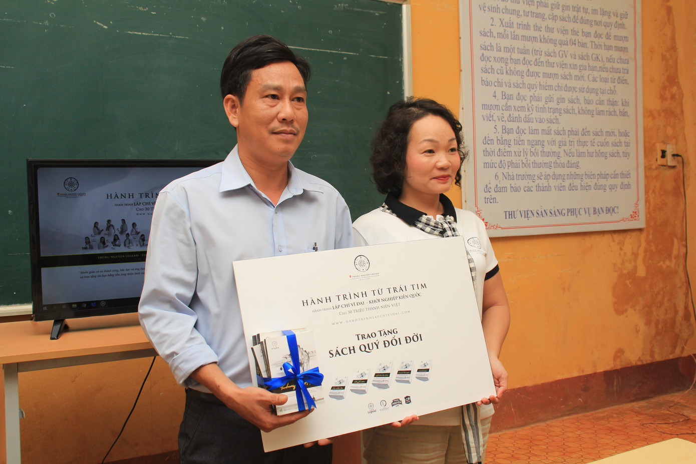 Dịp này, Ban tổ chức hành trình đã tặng hàng trăm quyển sách quý nằm trong “Tủ sách nền tảng đổi đời” do Chủ tịch Tập đoàn Trung Nguyên Legend tuyển chọn đến các em học sinh và thầy cô giáo nhà trường. Cạnh đó, hành trình cũng dành tặng những phần quà thiết thực cho các em học sinh vượt khó vươn lên học tốt nhằm tiếp thêm động lực để các em tiếp tục nuôi dưỡng ước mơ và hoài bão lớn trong chặng đường tương lai.