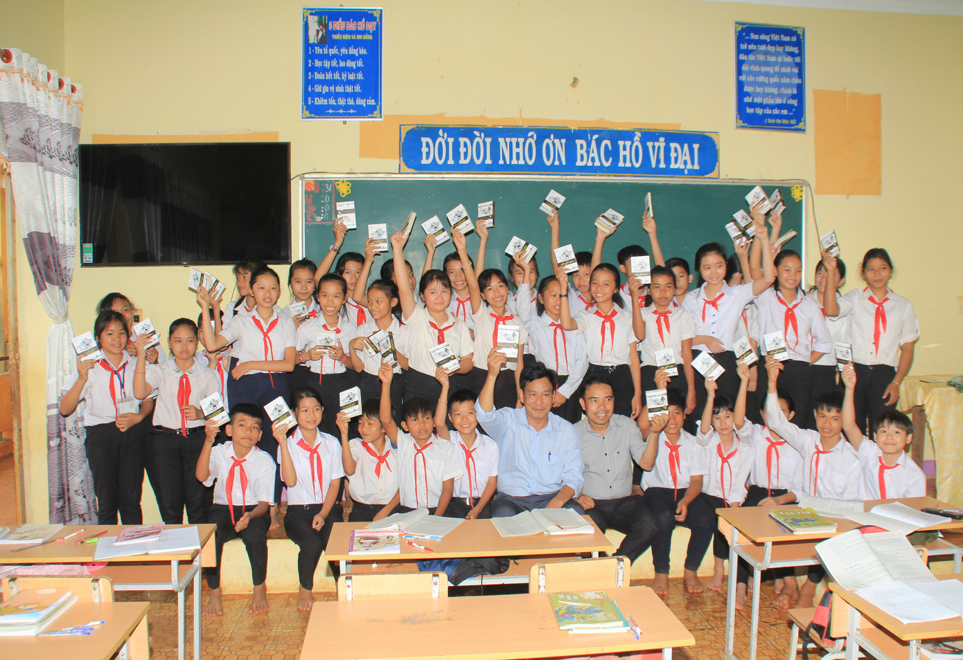 Hành trình đã dừng chân tại trường THCS Đoàn Đức Thái (ở xã Đồng Nai, huyện Bù Đăng) sau khi đi qua nhiều cung đường ngoằn ngoèo thuộc địa bàn khó khăn bậc nhất tỉnh Bình Phước.