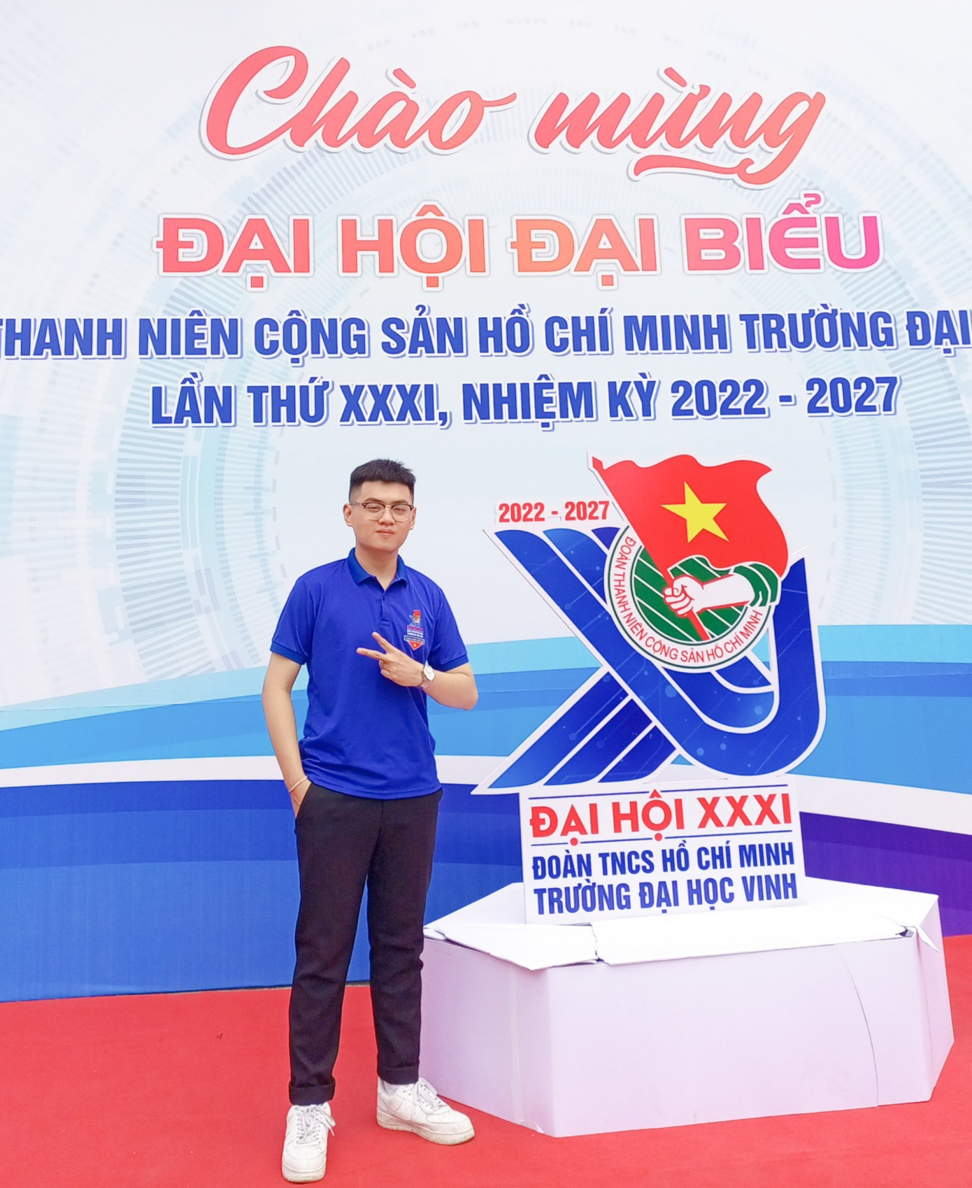 Và suốt trong 4 năm học đại học, mình đã đạt được rất nhiều thành tích từ Trường, Đoàn, Hội các cấp và đáng nhớ nhất đó là: nhiều năm liền nhận danh hiệu “Sinh viên xuất sắc năm học”, danh hiệu “Sinh viên 5 tốt” cấp Tỉnh, giải thưởng “Sao tháng Giêng” cấp Tỉnh và cũng là sinh viên Trường Đại học Vinh may mắn nhận 2 lần “học bổng Vallet” liên tiếp qua các năm 2022, 2023. Và hiện tại, mình đã được đứng vào hàng ngũ của Đảng Cộng sản Việt Nam.