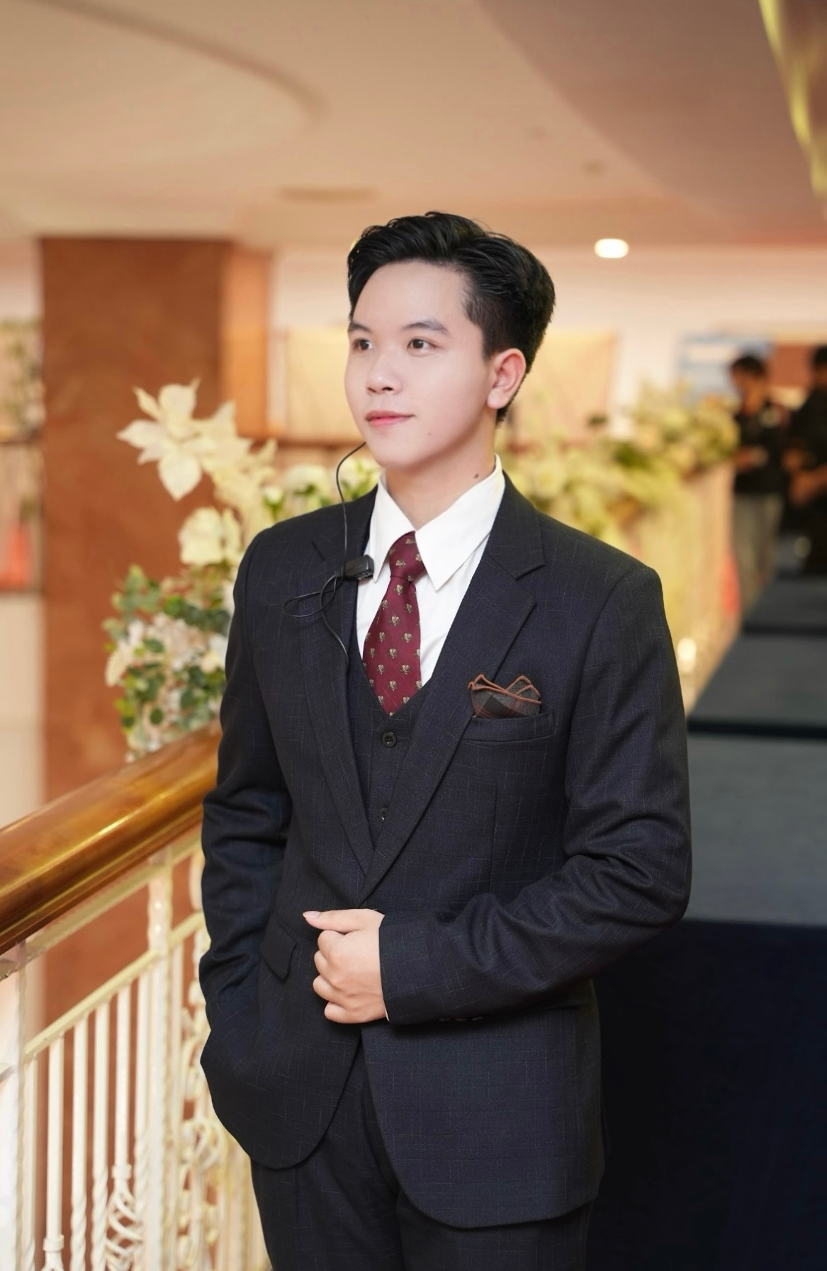 | Trung Kiên dẫn chương trình tại sân khấu Hội trường lớn Bộ Ngoại giao. |