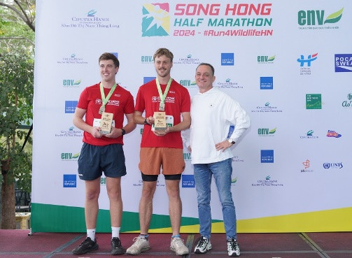 Trong phần trao giải cho các cự ly 21km và 5km, Ông Hugues Hervier - Tổng điều hành Công sản Ciputra Hanoi đã trực tiếp lên sân khấu trao giải cổ vũ các vận động viên xuất sắc Top 3 quán quân các cự ly Giải chạy HHM 2024. Với tinh thần làm việc khẩn trương, chuyên nghiệp cùng hơn 100 tình nguyện viên tích cực đến từ Quỹ Trung tâm Giáo dục thiên nhiên Việt Nam, Trung tâm tiếng Anh Jolo, Ban tổ chức Giải đã tạo được tín nhiệm và tin tưởng tổ chức sự kiện thành công năm nay. Đây cũng là sự kiện thể thao cộng đồng mà Ciputra Hanoi đã đồng hành và tài trợ địa điểm trong nhiều năm qua với sự phối hợp hỗ trợ tích cực đến từ Ban An ninh Ciputra; đội ngũ nhân sự Ciputra Club đã đóng góp không nhỏ cho sự thành công của sự kiện giải năm nay.