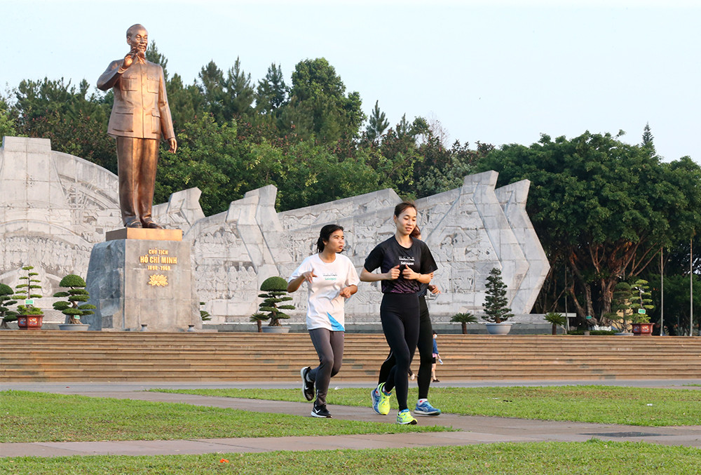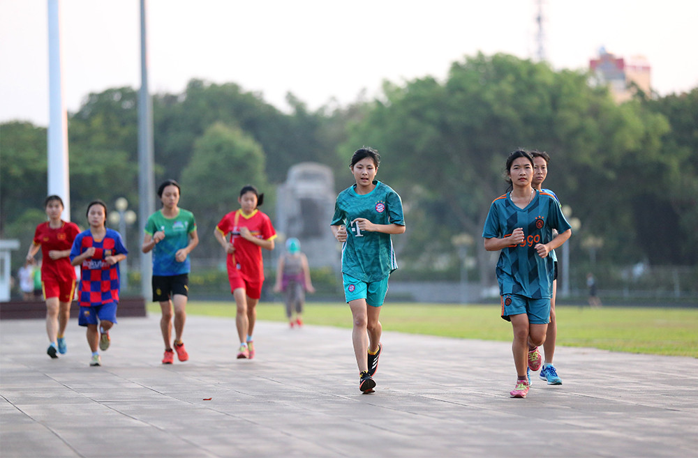 Các VĐV không phân biệt đến từ tỉnh, đoàn nào, cùng nhau tập luyện tập nên bầu không khí tập luyện sôi nổi taị quảng trường Đại Đoàn Kết.