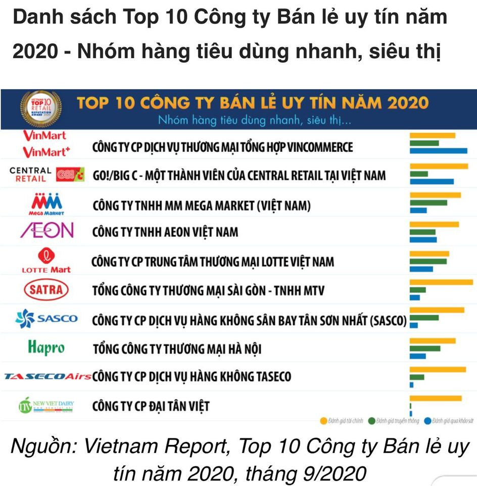 · Top 10 công ty bán lẻ uy tín năm 2020 – Nhóm hàng tiêu dùng nhanh, siêu thị