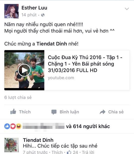 Thế nhưng, dù vắng mặt trong cuộc thi Hari vẫn dõi theo và gửi lời chúc mừng đến “tình cũ” khi Tiến Đạt xuất sắc chiến thắng trong chặng đầu tiên của chương trình. Hành động rất đẹp này của cô đã khiến fan không ngớt lời khen tặng, cũng như dành nhiều thiện cảm cho cô so với thời điểm mối tình này vừa chấm dứt.