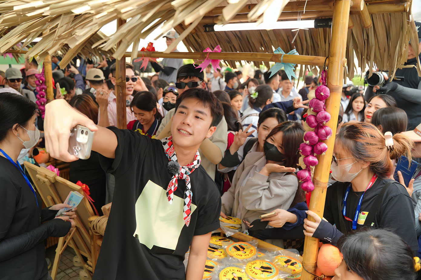 Không chỉ tham gia giao lưu, Hari Won còn lăn xả trong gian hàng “Kẹo cu đơ Anh Ba” để hỗ trợ ca sĩ Ngọc Sơn bán hàng. Sự xuất hiện gần gũi, chân thành của Hari Won góp phần tạo nên hình ảnh một nghệ sĩ hiện đại nhưng luôn hướng về văn hóa truyền thống, lan tỏa tinh thần tích cực và kết nối mạnh mẽ giữa người trẻ với giá trị bản địa.