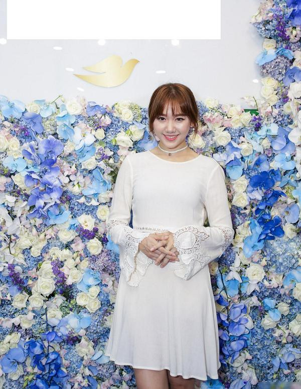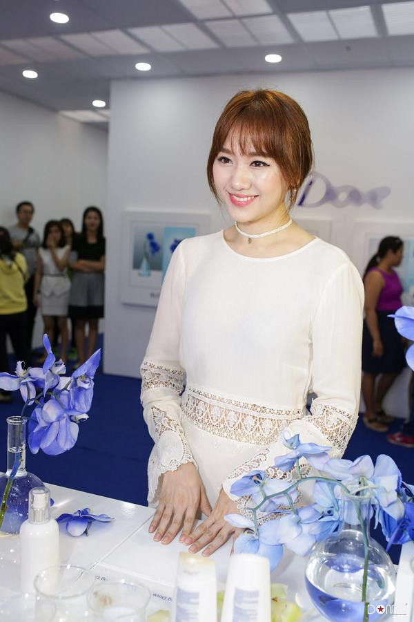 Dù vậy, Hari Won vẫn giữ được sự tươi tắn, nét đẹp mỏng manh với chiếc đầm dáng suông có điểm nhấn là phần tay áo thêu ren nữ tính.