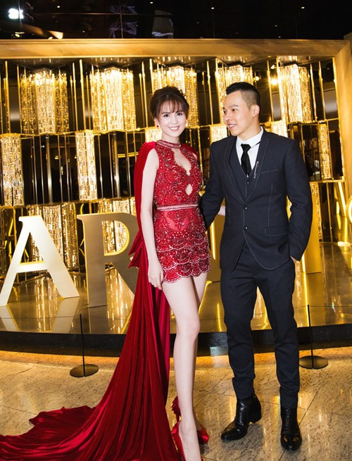 Chiếc váy xẻ ngực, có áo phần áo choàng phía sau là thiết kế của Đỗ Long từng được Ngọc Trinh mặc ở chung kết cuộc thi Hoa hậu Hàn Quốc vào hồi cuối tháng 10 vừa qua.