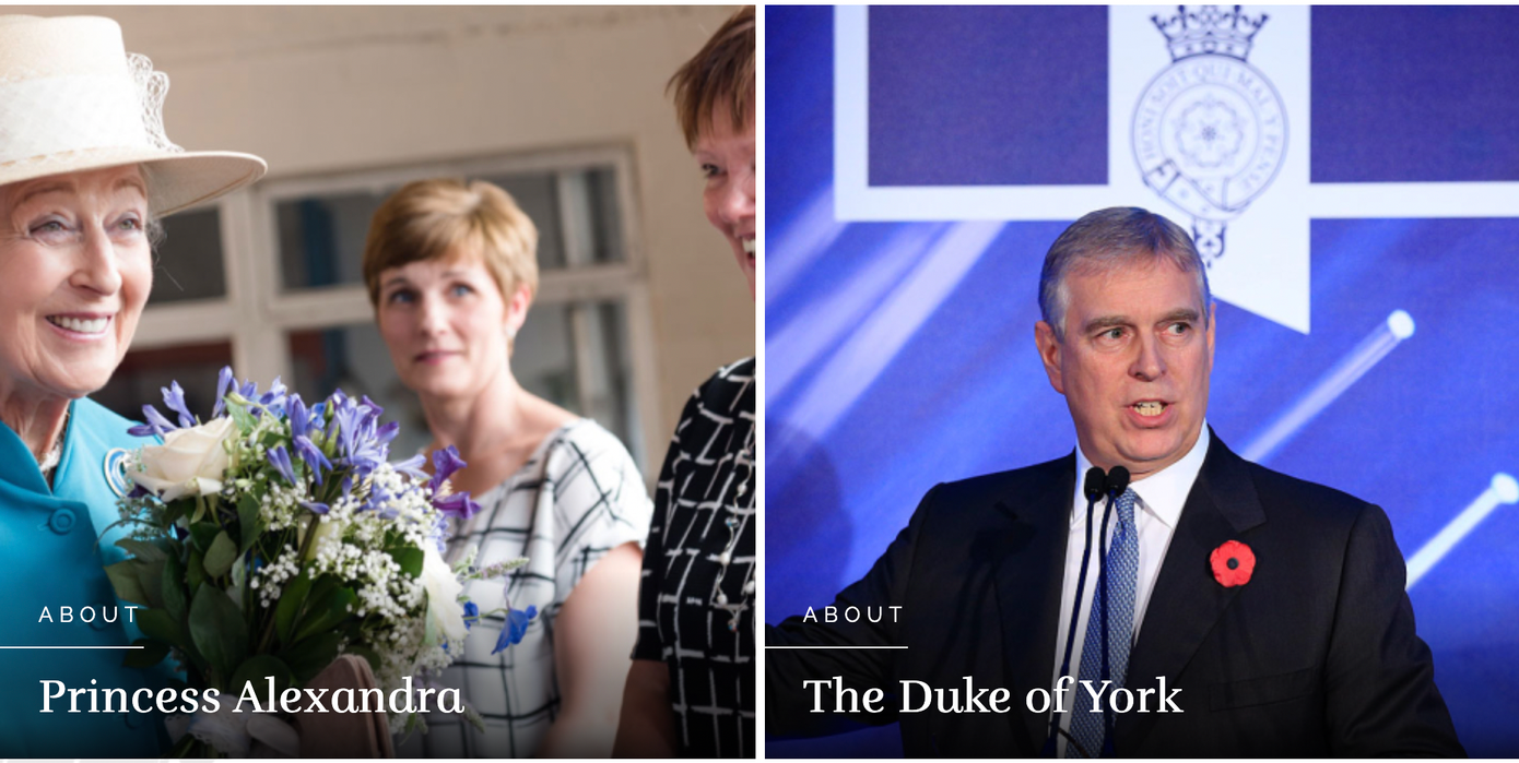 | Thông tin về Công tước và Nữ công tước xứ Sussex được đặt ở cuối trang web, sau cả Hoàng tử Andrew. |