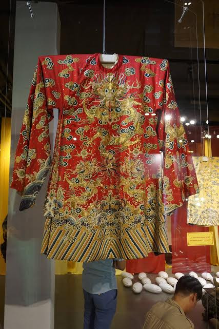 Trưng bày các bộ áo dài cung đình tại Trung tâm Văn hóa phố cổ Hà Nội do nghệ nhân Vũ Giỏi phục chế.