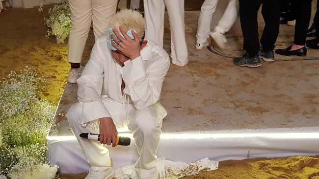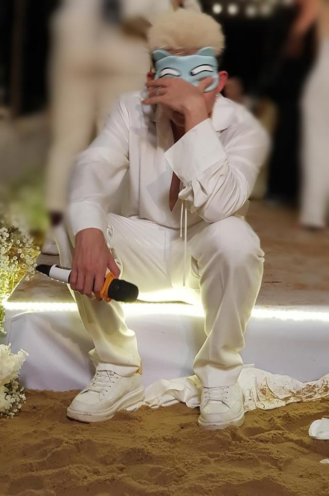 Năm nay, Jun Phạm lại trở thành người giành được hoa cưới của Ngô Thanh Vân trong đám cưới ở Đà Nẵng vào ngày 8/5. Và đương nhiên, đám cưới của "chị Ba" thân thiết thì Jun Phạm càng phải "bung xõa" hết mình hơn nữa. Đoán trước bản thân có thể sẽ say bí tỉ như năm trước, Jun Phạm đã chuẩn bị một chiếc bịt mắt màu xanh "cute phô mai que". Khi đã say, anh chàng ngồi bệt luôn xuống sân khấu, kéo bịt mắt rồi ngồi ngủ ngon lành.