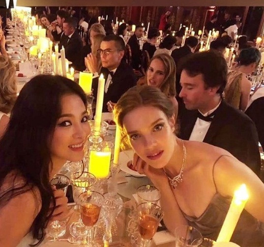 Trong tiệc tối, cô ngồi đối diện siêu mẫu Nga Natalia Vodianova.
