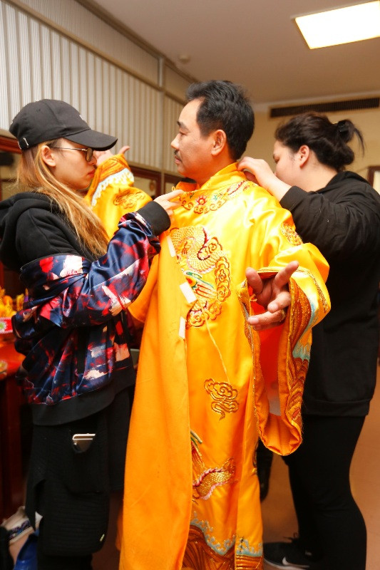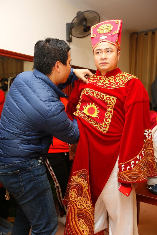 Táo Xã hội Tự Long được sửa soạn y phục trước giờ lên sàn ẢNh: Nhật Minh