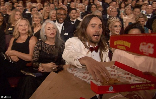 Nam diễn viên phụ xuất sắc nhất Jared Leto nhanh tay lấy miếng bánh cuối cùng trong hộp