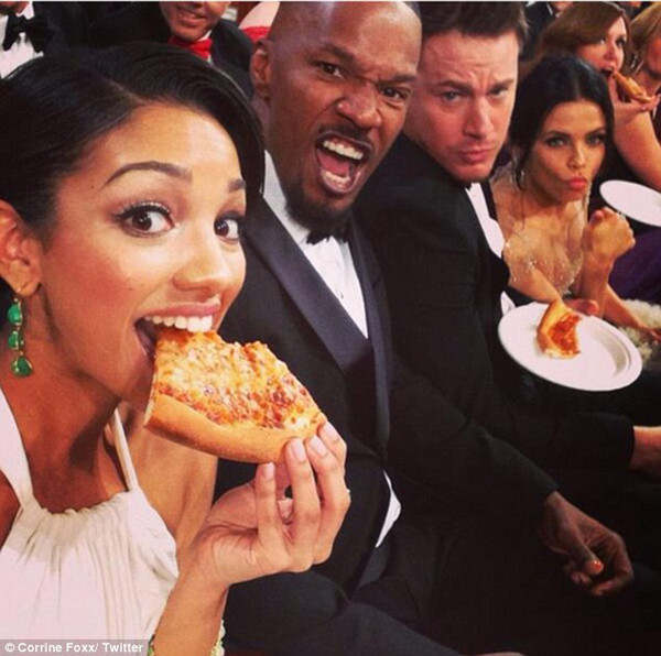 Nam diễn viên Jamie Foxx và con gái cũng rất háo hức khi thưởng thức pizza