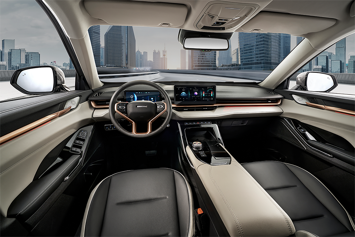 Bộ 3 màn hình: màn hình HUD hiển thị trên kính lái, màn hình đa thông tin 10.25 inch và màn hình cảm ứng thông minh 12.30 inch cho người dùng khả năng quan sát tối đa, gia tăng sự an toàn và thuận tiện trong quá trình lái xe. Hệ thống âm thanh 8 loa kết hợp loa Treble Woofer sử dụng công nghệ DTS và bộ ba màn hình được bố trí khoa học tạo hiệu ứng âm thanh chân thực sống động. Vô lăng ba chấu bọc da tích hợp nhiều phím chức năng với viền kim loại sáng bóng sang trọng. Cần số điện tử núm xoay tinh xảo và hiện đại. Ghế lái chỉnh điện 6 hướng và ghế phụ chỉnh điện 4 hướng tiện lợi và thoải mái. Sạc điện thoại không dây tiện nghi. Hệ thống điều hòa tự động 2 vùng nhiệt độ với chức năng lọc không khí và tạo i-on âm.
