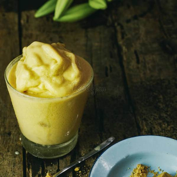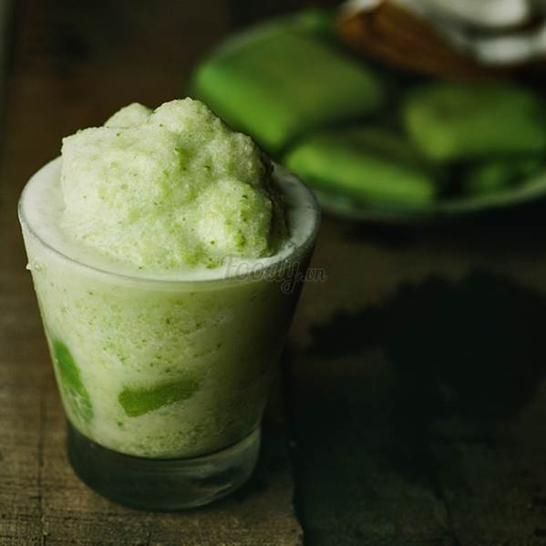 Phần cốt dừa trong món này cũng được xay nhuyễn cùng đá và sữa, nhưng có thêm một thành phần khác chính là bánh cốm. Hỗn hợp này sẽ được xay rất cẩn thận sao cho thành phẩm phải đạt được yêu cầu là phần sữa dừa mịn nhưng vẫn giữ nguyên được các hạt cốm nhỏ. Những hạt cốm lai dai giúp cho món đồ uống này thanh một cách tinh tế, cho dù sữa dừa có khá ngọt và vị đậu xanh có béo bùi thế nào đi nữa.