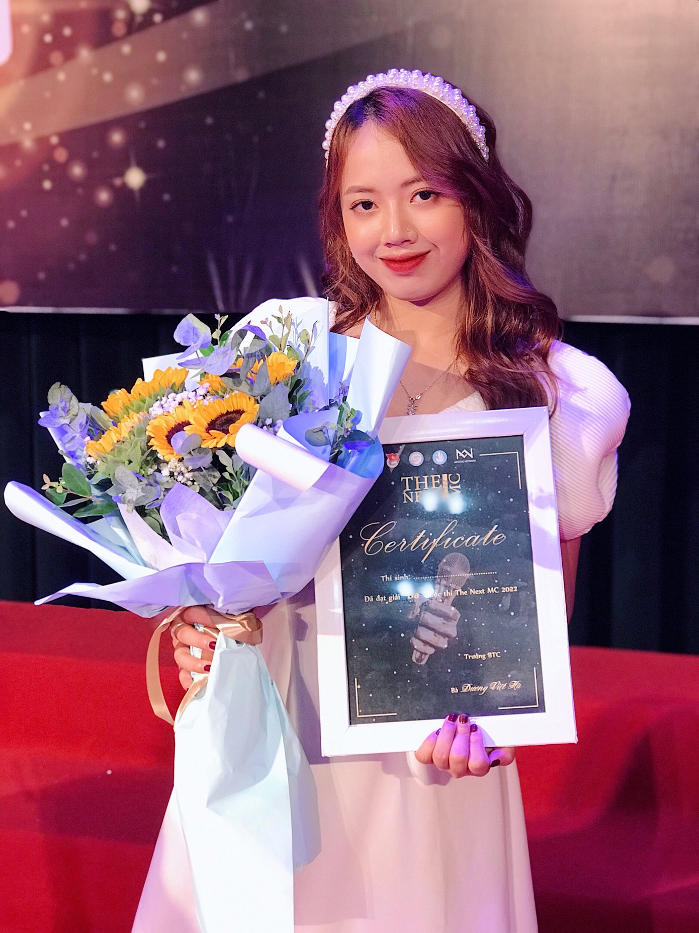 | Cô đạt Giải Ba cuộc thi "The next MC" do Hội sinh viên Thành phố Hà Nội tổ chức. |