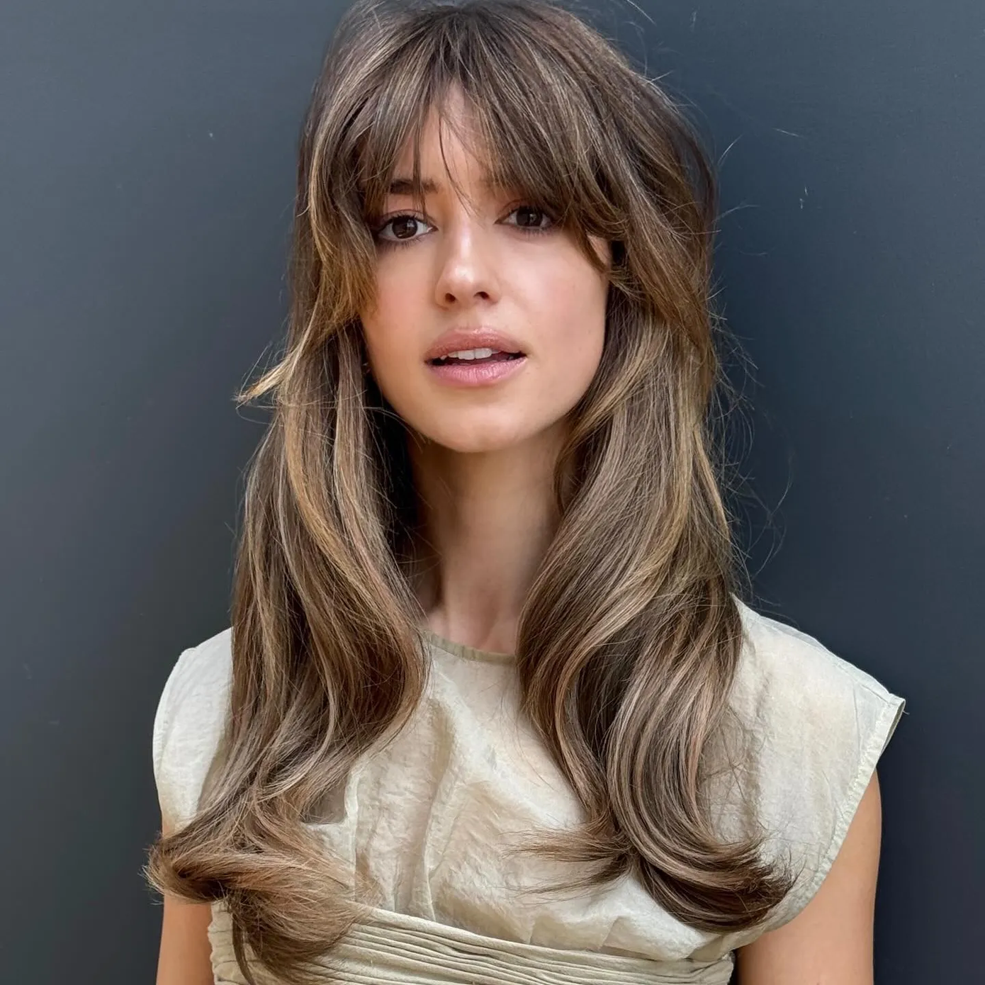 Sự kết hợp giữa tóc mái và các kiểu tóc dài tự nhiên, cắt layer, uốn lơi hoặc suông đều cho ra những phiên bản dễ thương, trẻ trung. Tóc mái rất hợp để tạo khung cho khuôn mặt và giúp phần tóc trông có điểm nhấn hơn, kể cả khi buộc lên gọn gàng.