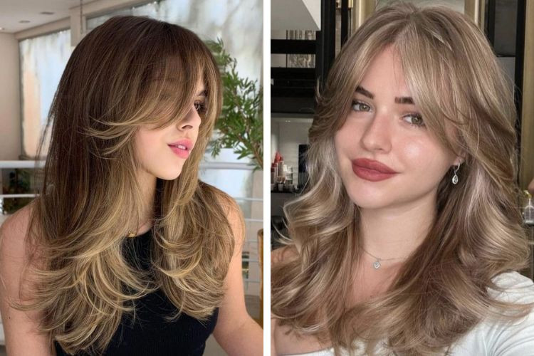 Tóc dài (layer, uốn nhẹ hoặc suông) để mái