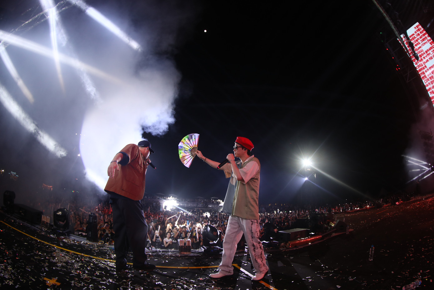 Lần đầu tiên "hạ cánh" tại Việt Nam, huyền thoại làng rap xứ Hàn - Epik High cũng mang đến set diễn không thể nhiệt hơn, khả năng khuấy động sân khấu và tương tác với khán giả miễn bàn. Các "anh chú" vừa biểu diễn vừa tấu hề, còn mang nón lá lên sân khấu trong tiếng reo hò phấn khích không ngớt của người hâm mộ.