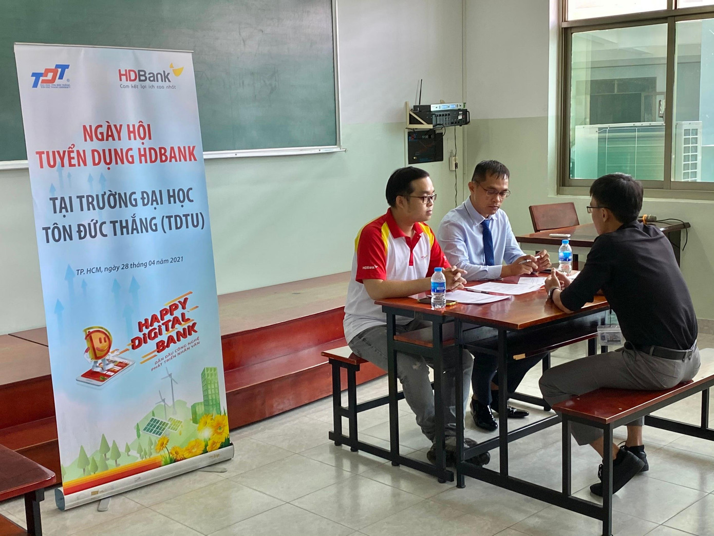 Song song, HDBank đã thực hiện phỏng vấn hàng trăm các em sinh viên Đại học Tôn Đức Thắng là ứng viên cho các cơ hội viêc làm và cơ hội thực tập sinh tại HDBank.