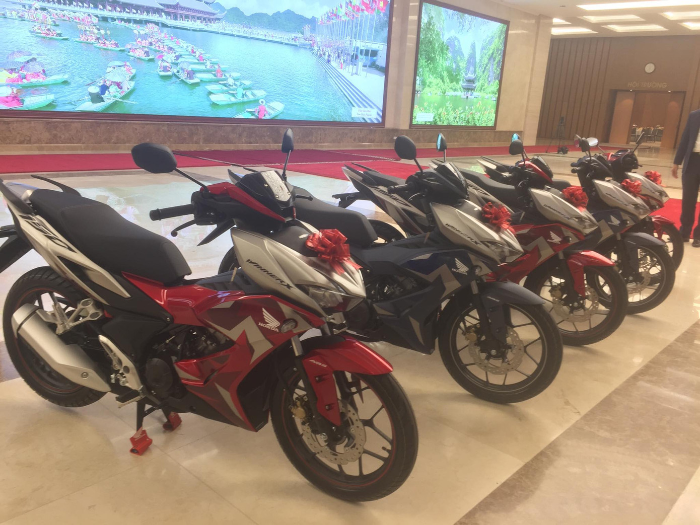 Bên cạnh các xe LEAD tặng cho các cầu thủ nữ, còn có các xe Honda Winner X đời mới được Thủ tướng dành tặng cho các tuyển thủ đội U22 vừa đoạt HCV tối qua.