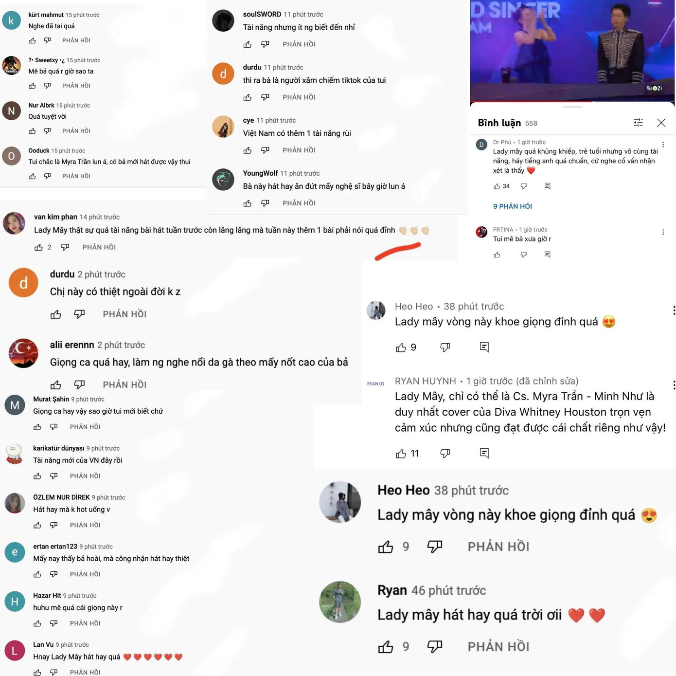 Sau khi màn trình diễn kết thúc, Tóc Tiên đã đưa ra nhận xét: "Ở đây thì Tiên và anh Thành đã nghe Lady Mây hát mấy lần rồi, mà chưa có vòng vào có thể đóng miệng lại… Giọng hát của Mây đối với chị là một báu vật". Trước câu nói này của Tóc Tiên, Lady Mây đã vô cùng xúc động. Còn Đức Phúc thì cho rằng giọng Lady Mây hội tụ quá nhiều tinh túy và một từ "đẹp" không đủ để nói về giọng hát của cô. Cố vấn Anh Tú khiến Trấn Thành, Tóc Tiên bất ngờ khi liệt kê ra 3 cái tên nghi vấn gồm Myra Trần, Lâm Bảo Ngọc và Hương Tràm khi nhắc đến Lady Mây.