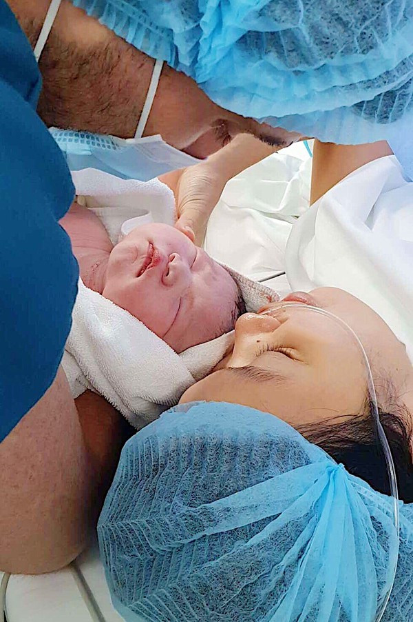 Chồng Olly cũng gác mọi công việc để ở bên cạnh vợ vào thời khắc thiêng liêng, nhưng cũng khó khăn nhất.