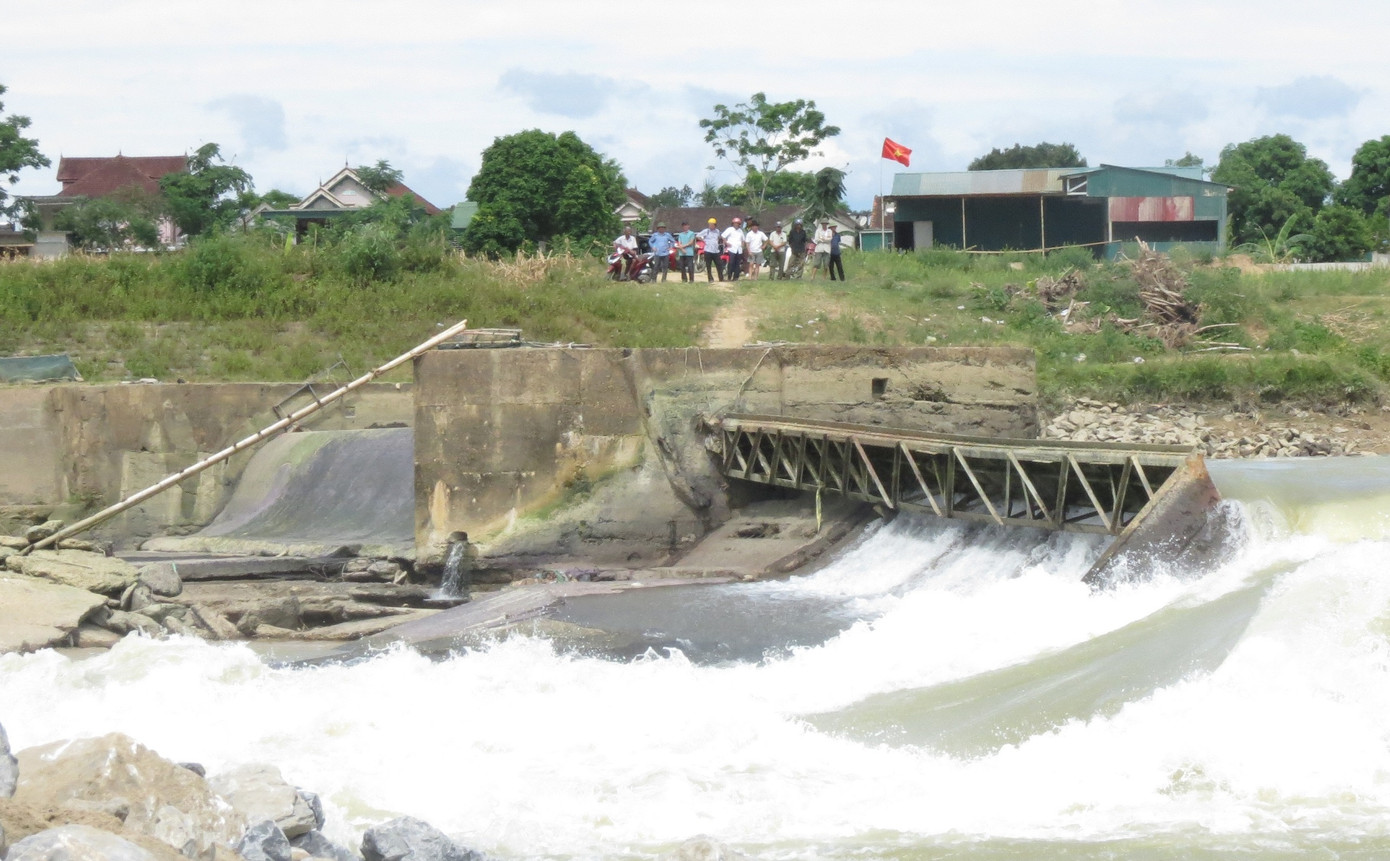 Trước đó, như đã đưa tin, sáng 7/6, khoang số 10, 11 tại đập Bara Đô Lương nằm trên sông Lam bị gãy sập hoàn toàn.