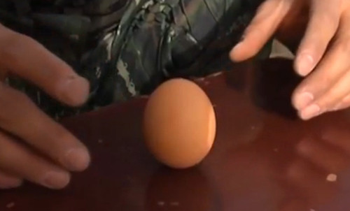 Dựng cây đũa hoặc quả trứng đứng yên trên một mặt phẳng, tương tự như khi các binh sĩ học cách giữ nguyên tư thế cầm súng trong một khoảng thời gian dài.