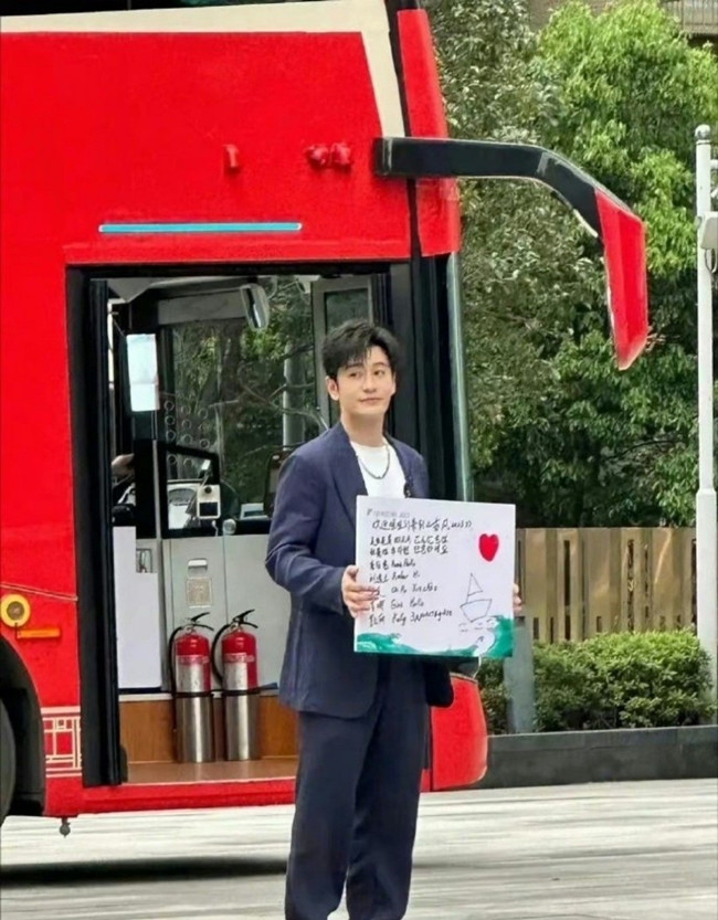 Mạng xã hội đang chia sẻ hình ảnh Huỳnh Hiểu Minh cầm một chiếc biển lớn ghi lời chào mừng bằng nhiều thứ tiếng để đón các thí sinh tham gia chương trình. Trong đó, đáng chú ý nhất là dòng chữ "Chipu - xin chào" bằng tiếng Việt.