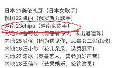 Chưa dừng lại ở đó, cư dân mạng còn liên tục chia sẻ danh sách các thí sinh tham gia chương trình mùa này, được các blogger tiết lộ sáng nay. Trong danh sách này xuất hiện dòng giới thiệu Nữ ca sĩ Việt Nam - Chi Pu.