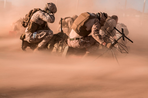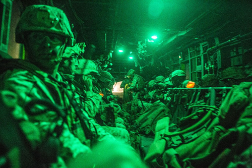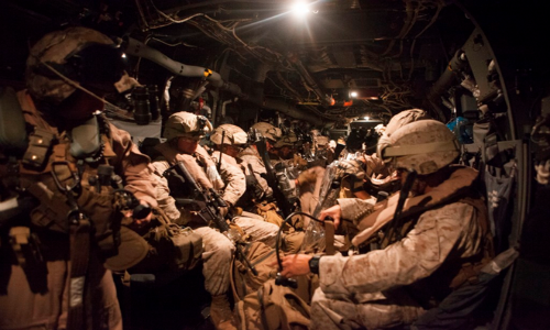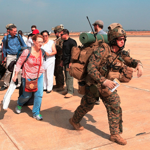 Lính thủy quân lục chiến thiết lập một vành đai phòng thủ để nhân viên và quan chức ngoại giao cấp cao di chuyển an toàn ra khỏi khu vực nguy hiểm. Mỗi người lính được trang bị một súng lục, súng ngắn và khẩu M4.